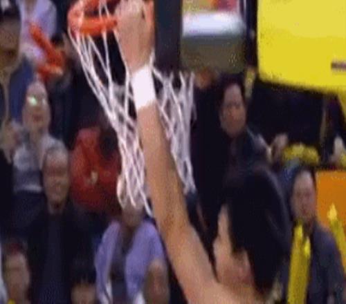 张洪硕扣篮被拉下来,落地左脚先落地又一个反关节扭曲,随后他跳着下场。