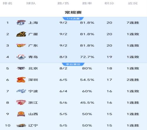 进入新赛季以来,广东队表现出色,一度取得开局8连胜登顶,输给北京队之后马上击败北控队,9胜1负高居积分榜第二位。上个月两队有过一次碰面,当时广东队3分优势险胜浙江队。