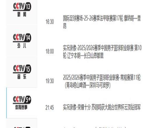 央视最新节目单显示,央视体育频道(CCTV5)、体育赛事频道(CCTV5+)将现场直播2场。其中,CCTV5将从19:30开始,聚焦直播上海久事与卫冕冠军浙江广厦方兴渡的较量。