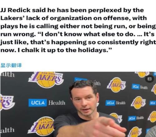 1月4日,湖人主教练雷迪克在接受采访时,不满球队打球混乱,进攻端毫无组织性,自己安排的战术没人执行!