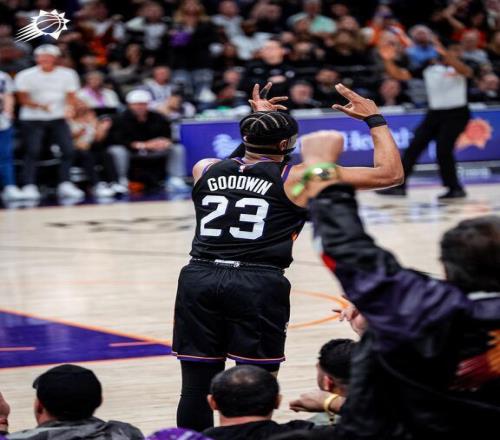 太阳队后场悍将古德温,迎来了大爆发。作为湖人旧将,古德温替补出战31分钟,投篮16中9,三分13中8,0罚球,砍下26分4篮板。古德温以56%的命中率轰下了全场的最高分,还以61.5%的命中率投进了全场最多的8记3分球。在篮板球保护和防守端,古德温也是拼尽全力。