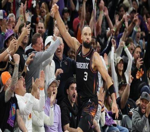 决胜时刻,布克面对双人防守轰进远投,帮助太阳绝杀了对手。依靠着布克的绝命远投,菲尼克斯逆转险胜。