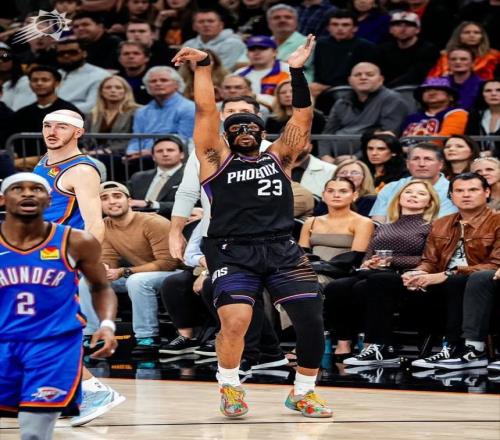 整体来看,古德温这赛季的三分,场均4.1次出手进1.4个,三分命中率33.3%,比他上赛季在湖人还低了接近5%。但他的投篮自信,可以说在太阳彻底培养起来了。