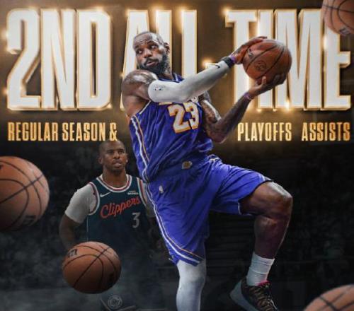 1月5日,湖人120比114击败灰熊,本场比赛詹姆斯贡献26分7篮板10助攻,从而让他的生涯总助攻数达到13793次,超越保罗13785次,成为NBA总助攻第二!