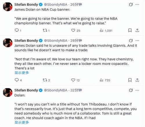 此前的交易流言中,尼克斯经常和字母哥联系在一起。谈到相关话题时,多兰表示,他并不知晓任何涉及字母哥的交易谈判,而且听他的口气,球队根本无意推动交易。