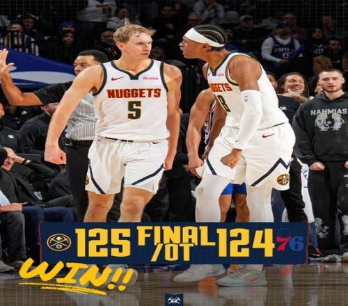 北京时间今日,在NBA常规赛中,丹佛掘金队在客场历经加时,以125-124力克费城76人队,终结两连败。