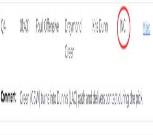 第一次漏判发生在距离比赛结束还有1分40秒,勇士队的格林在掩护时切入快船队邓恩的行进路线,并发生了身体接触。库里借此机会投中了一记三分球。这是一次漏吹的进攻犯规,勇士获利,快船吃亏。