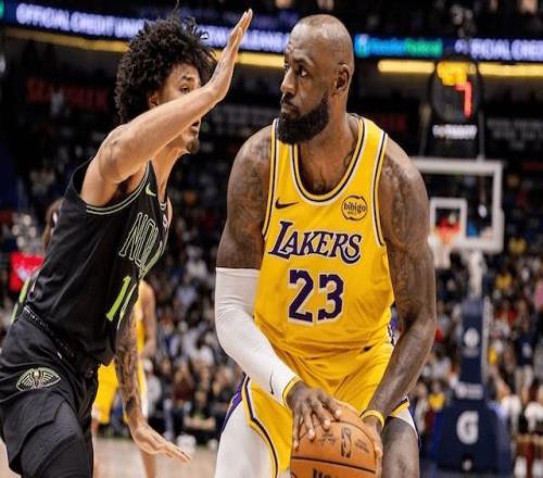 鹈鹕也是有名的烂队之一了,近期遭遇7连败,一胜难求,湖人会给他们送温暖吗?本场比赛,双方在首发阵容上面,湖人这边派出的是,詹姆斯,东契奇,斯马特,拉拉维亚,艾顿。鹈鹕这边派出的是,墨菲,费尔斯,琼斯,锡安和奎因。首节比赛开始,湖人率先拿到球权,詹姆斯上来就是一个战斧劈扣,打进本场比赛首个进球,艾顿空切篮下高举高打同样也有,费尔斯大步流星飞身抛投为鹈鹕开张,东契奇金鸡独立抬腿跳投还击一球,费尔斯手感火热,追身三分发炮一箭穿心,詹姆斯的大号三分火速跳投还以颜色,米西篮下吃饼勾手打板得分。