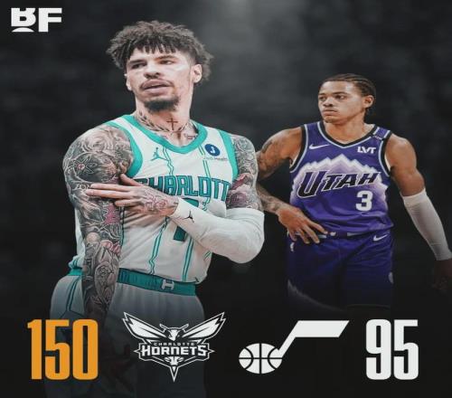 单场150分是黄蜂队史第二高分,队史最高分是158分。单场净胜55分,是黄蜂队史最大赢球分差。黄蜂9人得分上双,只有1人得分上20。特雷-曼恩替补出战12分钟,12投7中砍下20分,全队最高。三球重回首发阵容,12中5得到17+5+5!