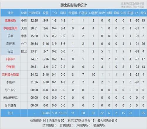 来看看四节比分(黄蜂在前):45-14、32-24、38-26、35-31。爵士球员科迪-威廉姆斯正负值-60,NBA历史最低纪录(自有统计以来)。此前记录是开拓者探花秀亨德森的-58(2024年3月,开拓者客场82-142不敌热火)。