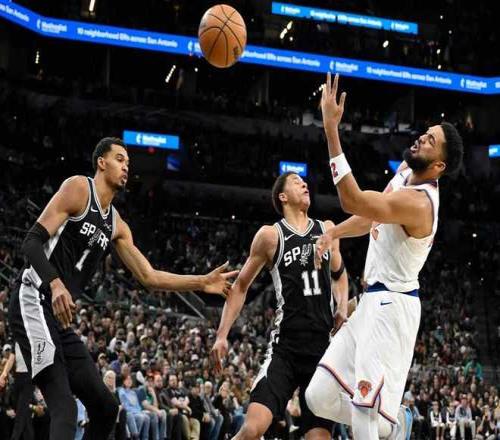 进入第四节比赛,福克斯抢断暴扣与卡斯尔两罚一中,文班亚马左腿受伤被换下场返回更衣室。克拉克森引领一波8-3攻势扩大11分优势,尚帕尼连中两记三分打停尼克斯,布伦森抛射命中。福克斯再得5分,阿奴诺比两罚一中与克拉克森三分命中,尚帕尼连中两记三分与福克斯抛射命中反超2分打停尼克斯。唐斯抛射得分,福克斯再得4分,麦克布莱德三分命中追到差1分,科内特补篮得分,麦克布莱德中投命中。双方接连打铁,科内特勾手命中加罚不中,唐斯6犯毕业,凯尔登抢篮板被犯规两罚全中扩大5分优势。布伦森三分命中续命,巴恩斯被犯规两罚全中,布伦森三分不中,凯尔登被犯规两罚全中扩大6分优势。麦克布莱德三罚全中追分,凯尔登抢到关键球权被犯规继续罚球扩大优势锁定胜局,最终马刺逆转险胜尼克斯。