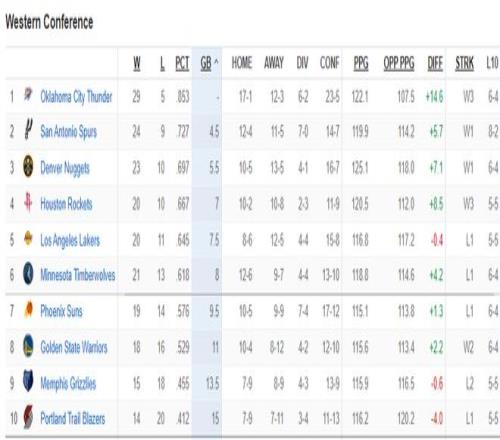 一波三连胜后雷霆29胜5负,胜率达到85.3%,虽然冲击73胜难度很大了,但冲击70胜还是有很大希望的,胜率85.3%就是69.8胜了。