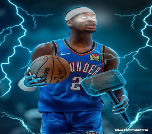本赛季亚历山大场均33.2分钟,拿到32.1分6.4助攻4.7篮板1.6抢断0.7盖帽,命中率56.3%,三分命中率42%,罚球命中率88.6%,雷神真的太强大。