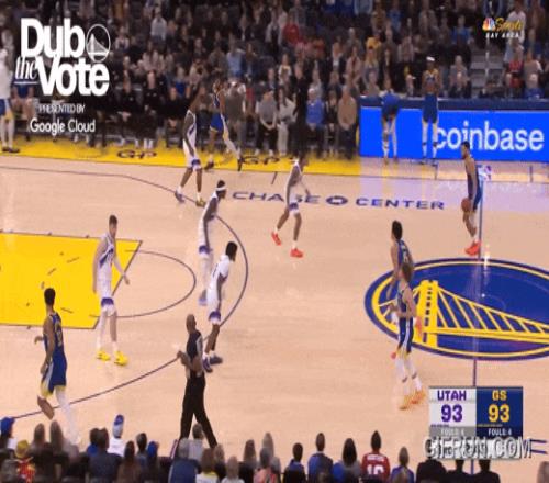 库里常规赛第43次单节20+。第三节93平时的LOGO远射夺魂一击。
