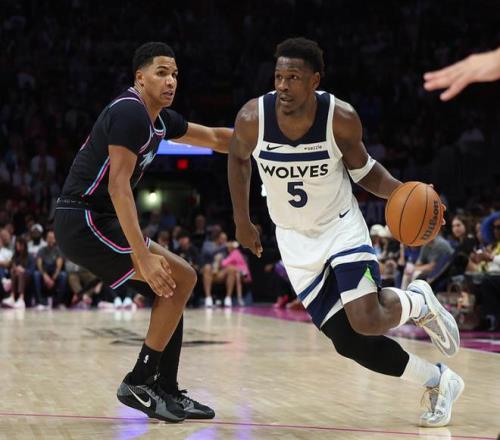 森林狼客场挑战热火,森林狼主力俱在,热火少了希罗,上半场比赛森林狼取得6分领先,第三节热火追回2分,第四节森林狼再次占据上风,最终森林狼以10分优势拿下比赛。爱德华兹19中10得到33分3板5助,里德15中10(三分7中4)得到29分4板3助2帽,兰德尔17中10得到23分10板4助,热火方面鲍威尔13中6得到21分1板1助,米切尔10中6得到14分4板6助。