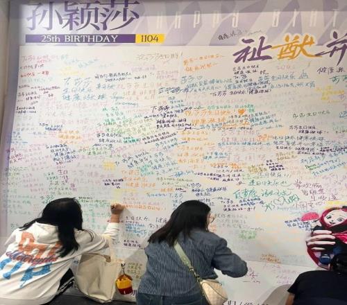 上图:2025年11月4日,全国各地孙颖莎球迷自发组织了生日会,为运动员应援。受访者供图