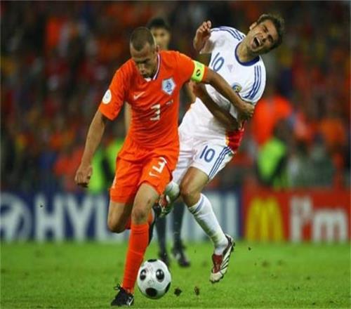2004年欧洲杯,当时还是新人的海廷加,第一次代表荷兰队参加国际大赛。绝大多数新人遇上这种场合,都会小心翼翼,唯恐自己犯下错误。可是海廷加呢,踢得那叫一个莽。在荷兰对阵捷克的经典之战,海廷加在上下半场比赛分别吃到一张黄牌,被当值主裁请了出去。