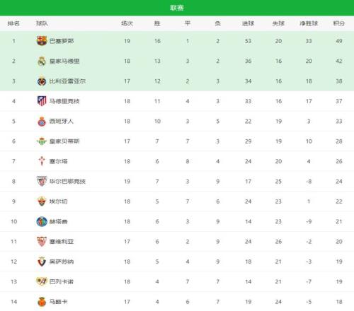 西甲最新积分战报输巴萨后比利亚雷亚尔再夺连胜4分之差追皇马