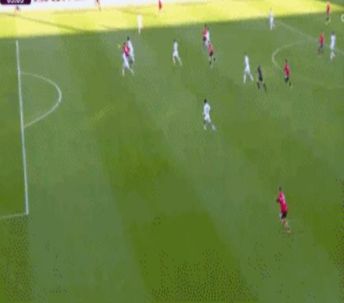 第62分钟,利兹联队快速反击,阿隆森强突海文之后左脚斜射破门,1比0!