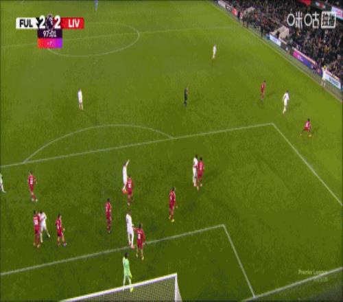 比赛第77分钟,利物浦逃过一劫。富勒姆球员威尔逊吊射空门,皮球击中横梁弹出被解围。