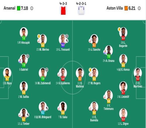 维拉首发:23-马丁内斯、26-博加德、4-孔萨、3-林德洛夫、12-迪涅、24-奥纳纳(46’7-麦金)、8-蒂莱曼斯(81’20-贾马尔丁·吉莫)、19-桑乔(61’17-马伦)、27-罗杰斯(81’53-乔治·海明斯)、10-布恩迪亚(61’16-安德烈斯·加西亚)、11-沃特金斯。