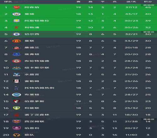 英超最新积分榜