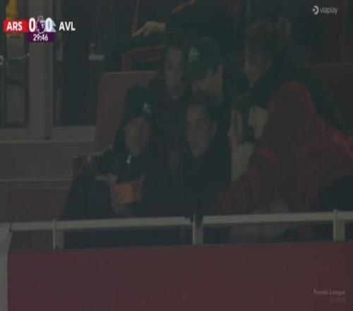 英国著名女歌手杜阿-利帕现场观看了阿森纳对维拉的比赛。