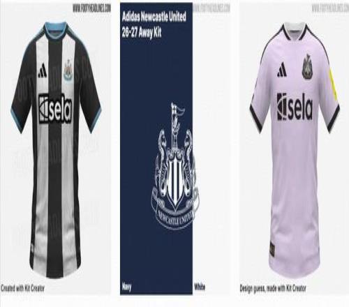 纽卡斯尔联下赛季球衣设计仅为初步预测版本。主场球衣延续了经典的黑白条纹图案,搭配浅蓝色三条纹。而客场球衣的主色调为海军蓝拼接白色。第三球衣预测为纯白设计,搭配黑色细节。