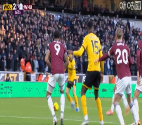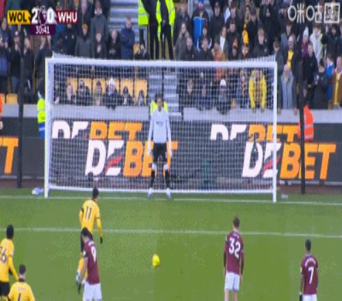 第37分钟,狼队险些再进一球,但近在咫尺的射门,被西汉姆门将阿雷奥拉用脚挡出。
