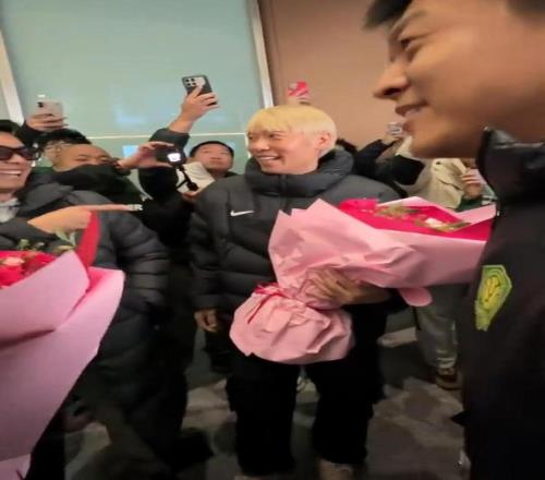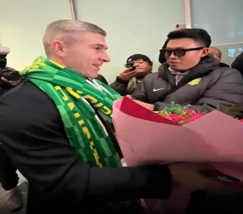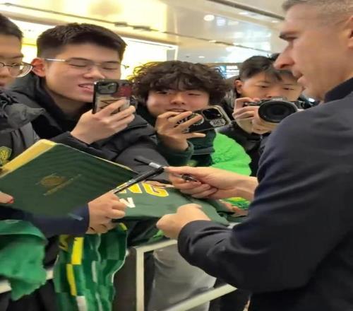 期盼已久!很多国安球迷自发接机,和蒙哥马利索要签名并合影,蒙哥马利也第一时间感受到了国安球迷的热情。俱乐部工作人员、部分球员迎接新帅,其中,张稀哲手捧着鲜花也迎接新帅。 有工作人员向蒙哥马利介绍:“这是我们的队长,10号球员。他曾经和你交手过,在12年前。”