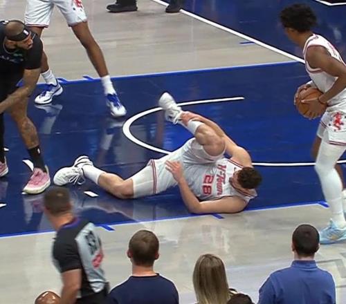 折损大将,申京开场64秒落地90度崴脚,本场不回归